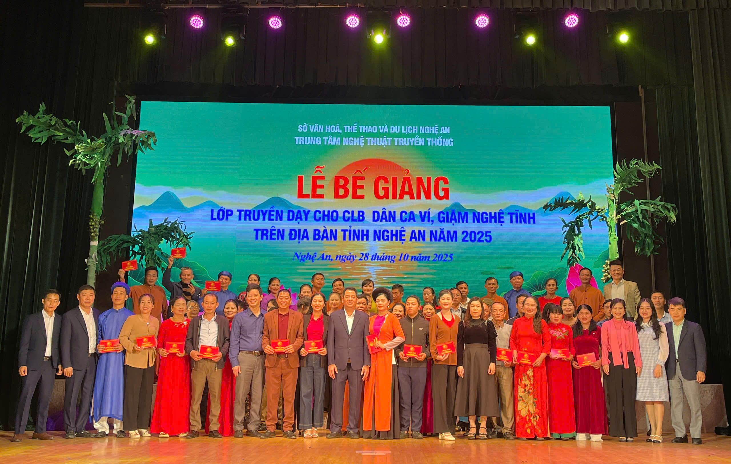 Kết thúc chương trình, Ban Tổ chức đã trao Giấy chứng nhận hoàn thành khóa học cho các học viên tham gia lớp truyền dạy. Đây là sự ghi nhận tinh thần học tập và đóng góp của các nghệ nhân, đồng thời là động lực để các Câu lạc bộ dân ca tiếp tục hoạt động hiệu quả, góp phần gìn giữ, trao truyền và lan tỏa giá trị của dân ca Ví, Giặm Nghệ Tĩnh - di sản văn hóa phi vật thể đại diện của nhân loại được UNESCO ghi danh./.