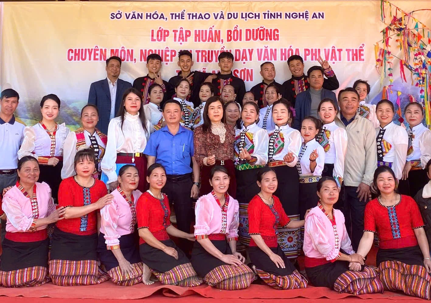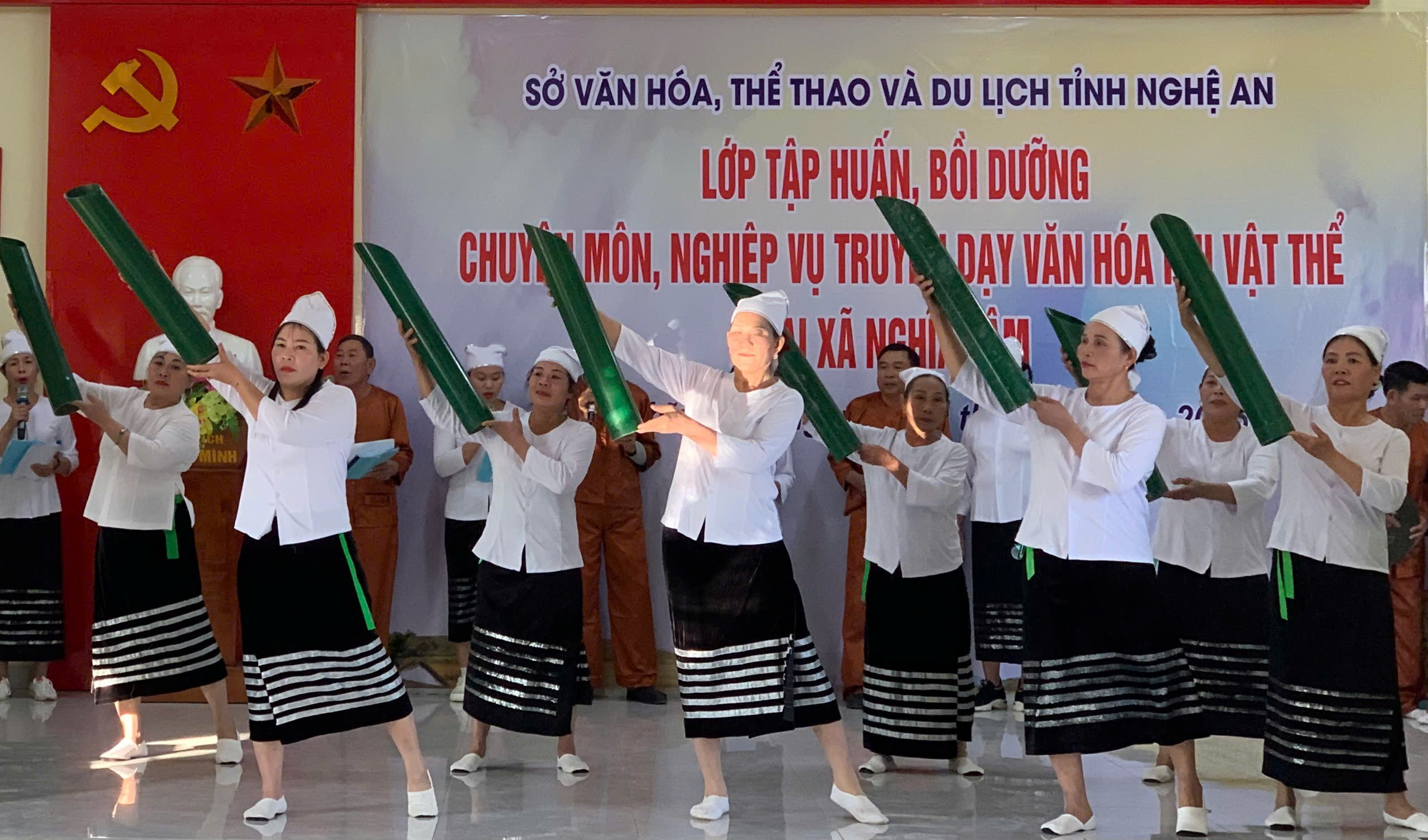 Nằm trong kế hoạch thực hiện Chương trình MTQG phát triển kinh tế - xã hội vùng đồng bào dân tộc thiểu số và miền núi năm 2025, dịp này, Sở VHTT&DL cũng tổ chức lớp Tập huấn bồi dưỡng chuyên môn, nghiệp vụ truyền dạy văn hóa phi vật thể tại xã Nghĩa Lâm.