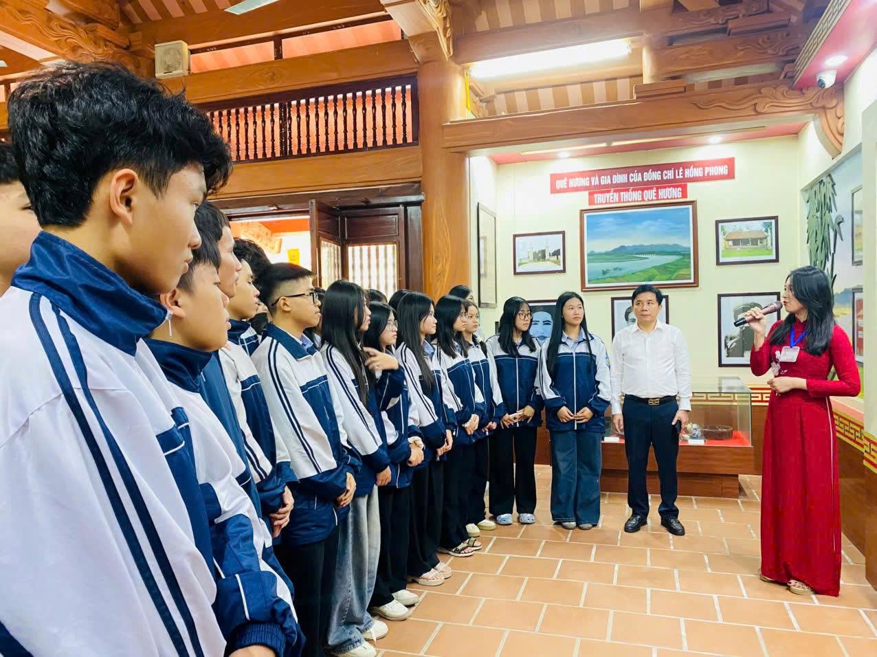 Những buổi tham quan không còn đơn thuần là "nghe - xem - về". Các em được nghe cán bộ chia sẻ những câu chuyện lịch sử theo cách dễ hiểu, gần gũi. Từ căn nhà tranh giản dị - nơi Lê Hồng Phong từng sinh ra và lớn lên, cho đến những hiện vật quý giá gắn liền với hành trình cách mạng của đồng chí, tất cả như "mở ra" những trang sách lịch sử, biến chúng thành những hình ảnh sống động, dễ cảm nhận. Đôi mắt long lanh, em Nguyễn Hồng Hạnh (học sinh Trường THCS Cửa Nam) chia sẻ: “Trước giờ em chỉ đọc về Tổng Bí thư Lê Hồng Phong trên sách. Nhưng đứng ở đây, nhìn thấy nơi đồng chí sinh ra, được nghe về cuộc đời và hy sinh anh dũng của Tổng Bí thư, em mới hiểu được sự hy sinh ấy có ý nghĩa như thế nào”. Còn với em Trần Đức Anh - học sinh Trường THCS Hà Huy Tập, thì: "Khi thầy cô giảng trên lớp, em cũng hiểu, nhưng nghe và nhớ thôi. Còn đến đây, em thấy mình... cảm nhận được. Lịch sử không còn xa lạ nữa mà trở nên rất gần, như một phần của cuộc sống em vậy."