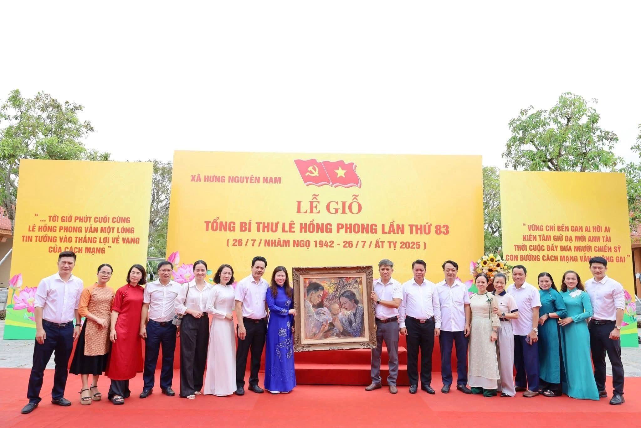 Chi bộ Khoa Âm nhạc - Mỹ Thuật Trường Cao đẳng Văn hóa nghệ thuật Nghệ An trao tặng bức tranh “Chung một cơ đồ” cho Khu lưu niệm Tổng Bí thư Lê Hồng Phong
