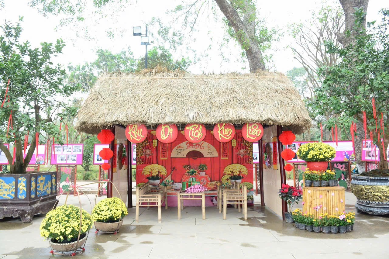 Tại Khu di tích Kim Liên: Trước thềm năm 2026, đơn vị đã hoàn tất công tác chỉnh trang cảnh quan, bảo đảm các điều kiện cần thiết để sẵn sàng đón các đoàn đại biểu và du khách dâng hương, tưởng niệm. Mừng Đảng, mừng Xuân Bính Ngọ, Khu di tích Kim Liên được trang hoàng lộng lẫy với điểm nhấn là màu hồng sen tượng trưng cho quê hương Bác, kết hợp tiểu cảnh, thảm hoa rực rỡ, không gian "Chợ quê" trưng bày đặc sản, viết thư pháp, và triển lãm chủ đề "Đảng Cộng sản Việt Nam", tạo không khí Tết xưa ấm cúng, mang đến trải nghiệm du xuân ý nghĩa về nguồn, tưởng niệm Bác Hồ và gia đình