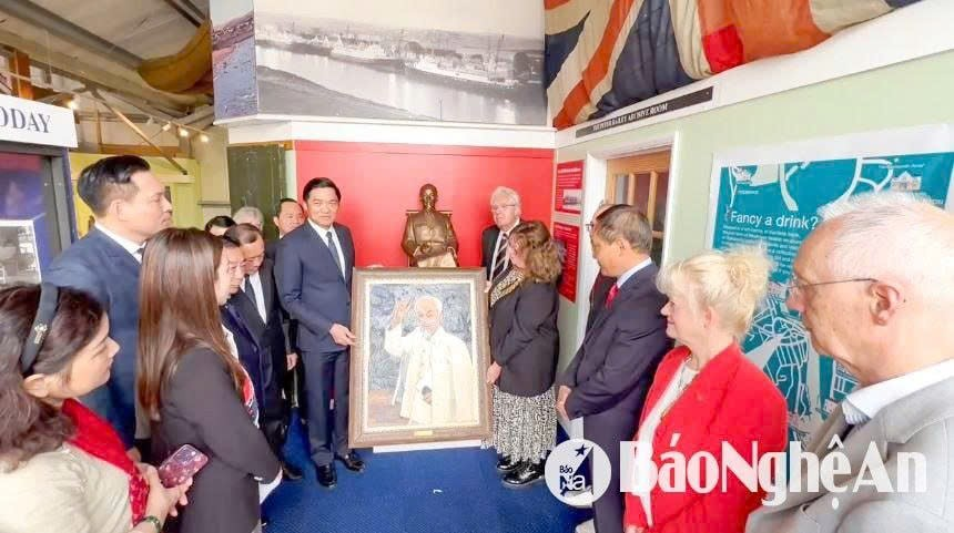 Đoàn công tác tỉnh Nghệ An tặng bức ảnh Chủ tịch Hồ Chí Minh cho Bảo tàng Newhaven.