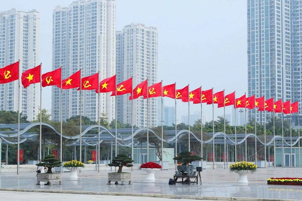 Trên các tuyến phố trung tâm, quảng trường và không gian công cộng, cờ Đảng, cờ Tổ quốc, băng rôn, pano, áp phích được trang hoàng trang trọng, tạo nên bức tranh rực rỡ sắc màu. Trong tiết trời đông Hà Nội, lòng người như ấm hơn bởi niềm tự hào và kì vọng hướng về Đại hội - dấu mốc mở ra chặng đường phát triển mới của đất nước trong kỷ nguyên vươn mình của dân tộc.