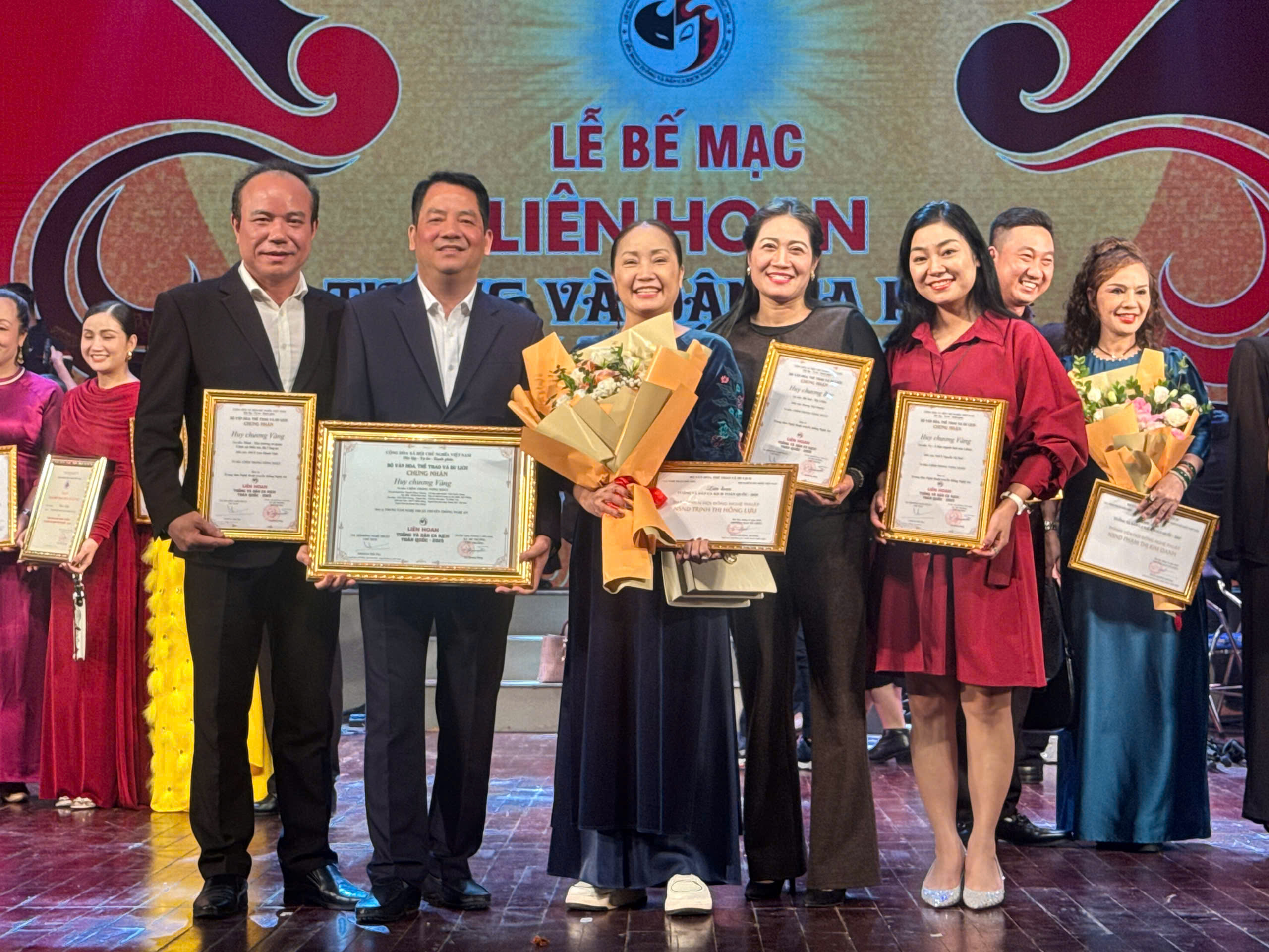 Niềm vui của các nghệ sĩ Nghệ An trong lễ bế mạc trao giải Liên hoan
