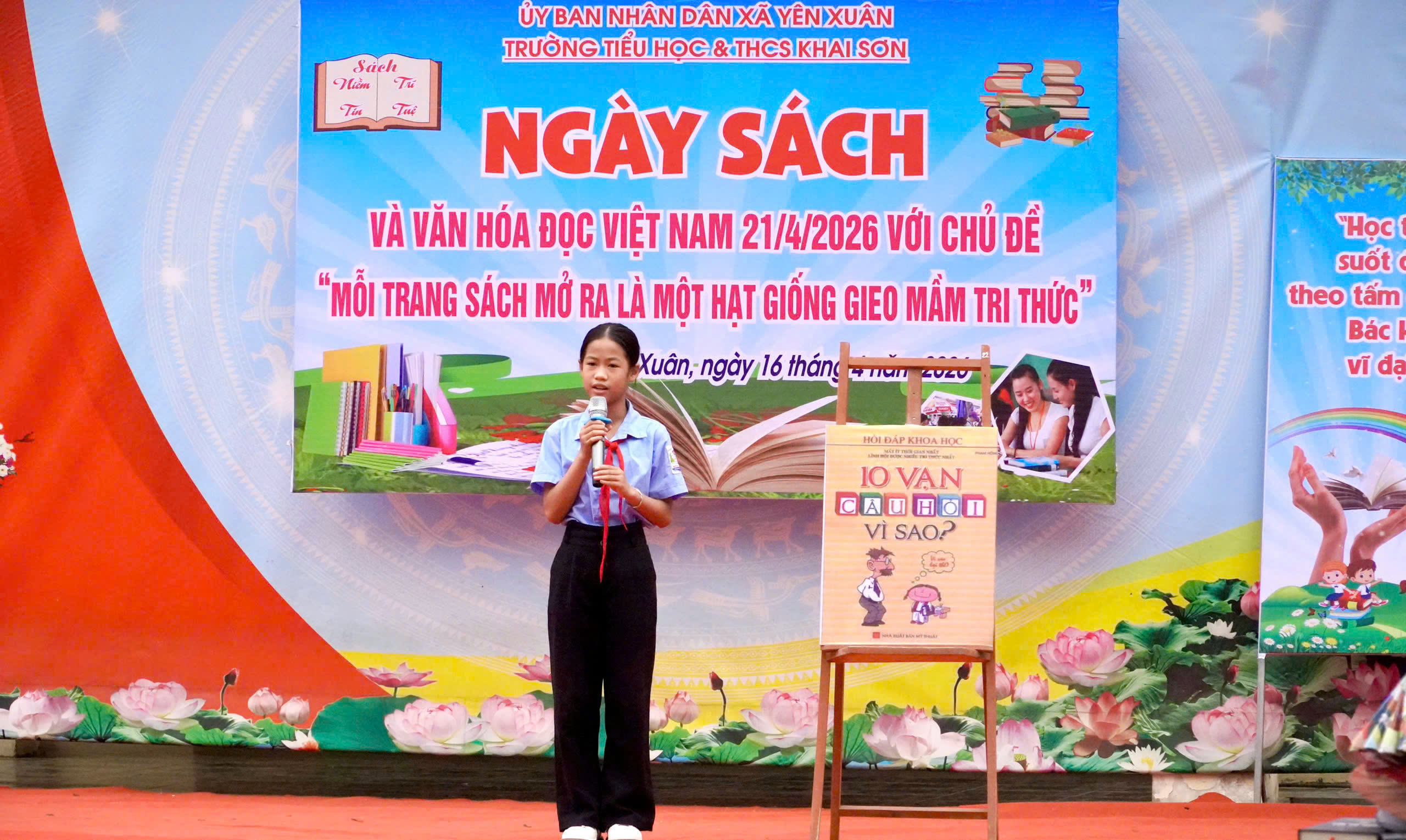 Sáng 16/4/2026, tại Trường Tiểu học và Trung học cơ sở Khai Sơn, UBND xã Yên Xuân đã tổ chức Ngày Sách và Văn hóa đọc Việt Nam lần thứ V năm 2026 trong không khí vừa trang trọng, vừa gần gũi.